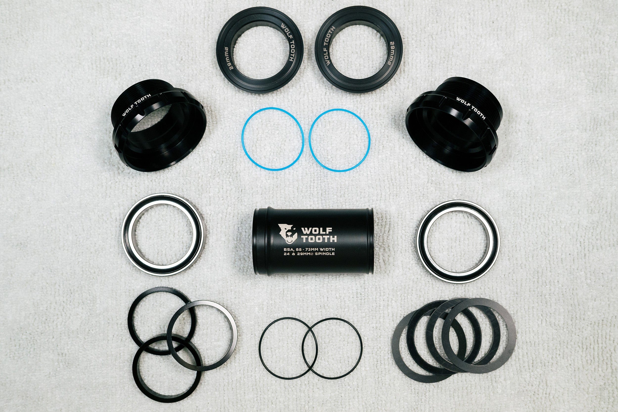 Our bottom brackets are rebuildable. Bearings, bushings, and o-rings are available to service your Wolf Tooth Bottom bracket.